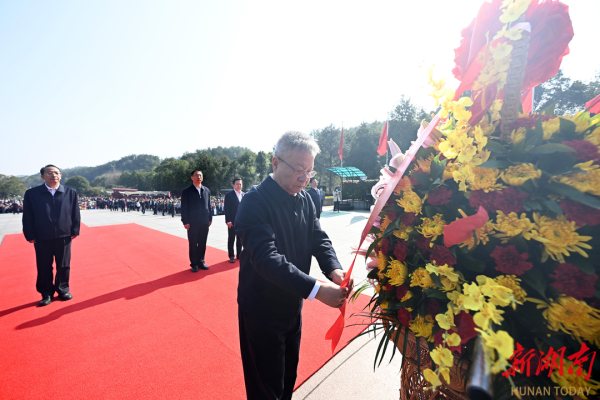 3月15日,沈晓明向毛泽东同志铜像敬献花篮。