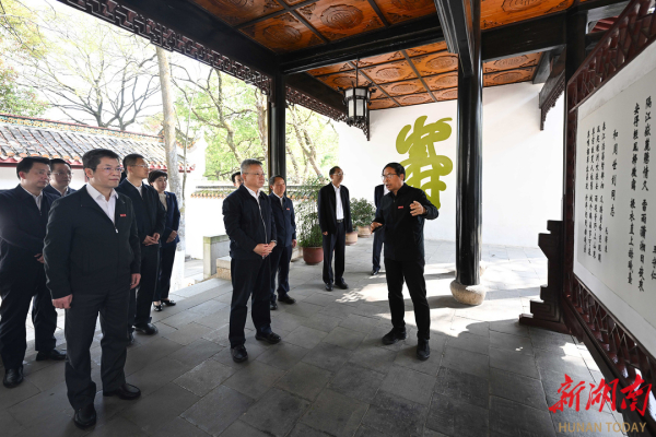 “惟楚有材,于斯为盛。”坐落于岳麓山脚下的岳麓书院,是湖湘文化传播的重地、湖湘人才培养的摇篮。沈晓明认真了解书院发展历程、文化传承保护等情况,并详细听取了书院关于湖湘文化“心忧天下、敢为人先、经世致用”等精髓特质的介绍。他说,来到岳麓书院,深受启迪教育,接受了一堂生动的湖湘文化课。我将和大家一道共饮湘江水、讲好湖南话、办好湖南事。沈晓明指出,习近平总书记2020年9月到岳麓书院考察时作出了“岳麓书院是党的实事求是思想路线的重要策源地”的重要论断,我们要深入学习领会,进一步挖掘、传承和弘扬实事求是的精神内核,将其作为人文社会科学研究的重大课题,加强研究阐释。要落实立德树人根本任务,利用湖湘文化、红色资源上好思政课,更好发挥中共党史和湖湘文化资政育人的作用,把岳麓书院办成一个“活”的书院。