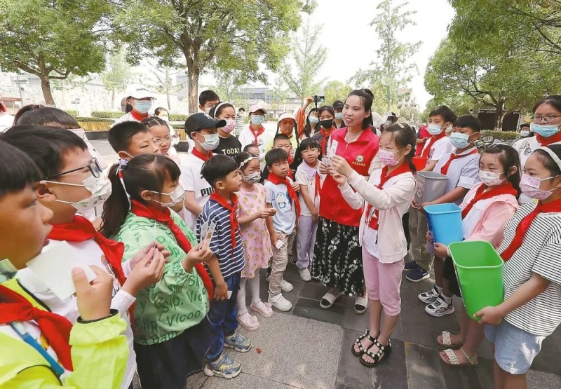 6月11日,滁州市琅琊区新时代文明实践中心在该区古宋城街区开展“大手拉小手”环保主题活动。(通讯员 李晓村 摄)