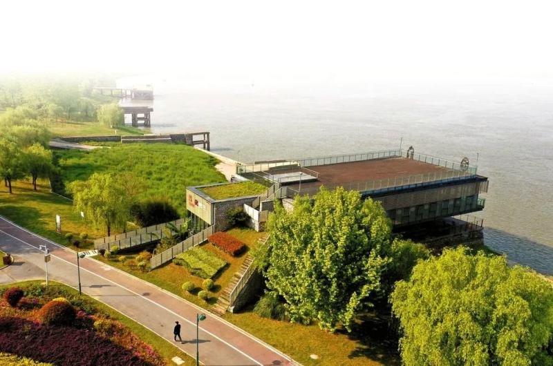 铜陵市滨江生态公园“码头书屋”远景。该书屋是利用一座长江废弃码头改造的公益性大型书屋。(通讯员 过仕宁 摄)