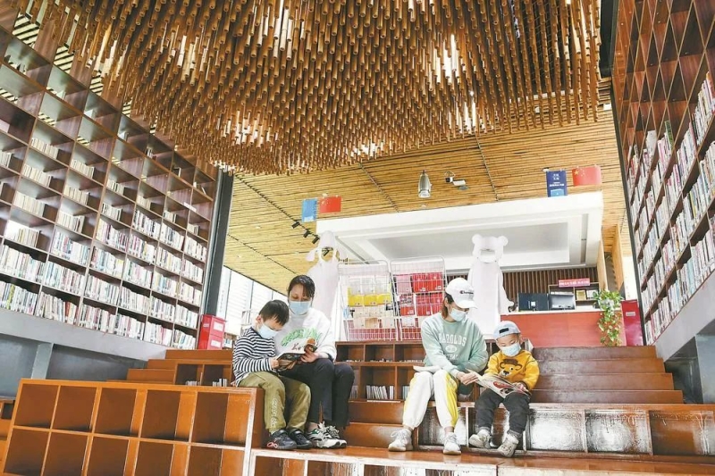 近日,读者在铜陵市滨江生态公园“码头书屋”阅读。(通讯员 过仕宁 摄)