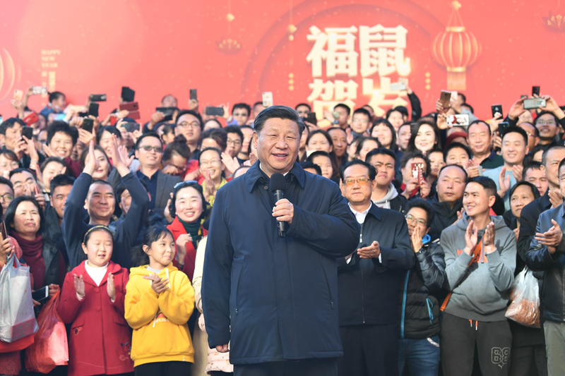 1月19日至21日,中共中央总书记、国家主席、中央军委主席习近平来到云南,看望慰问各族干部群众,向全国人民致以新春祝福。这是20日下午,习近平在昆明国际会展中心展厅外广场上,向云南群众、向全国各族人民、向港澳台同胞和海外侨胞致以新春祝福。新华社记者 谢环驰 摄