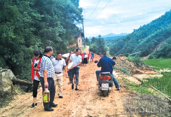 洪灾过后,湘乡市文联干部到灾区慰问