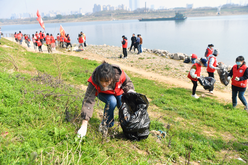 当天的志愿服务活动有近60名志愿者参加,他们中绝大多数是驻潭高校的大学生,也有家长带着孩子来体验“亲子公益”的。他们身披红马甲,在阳光下忙碌着,成为湘江边一道靓丽风景线。“我们今天‘净滩’行动以捡拾江岸垃圾为主,日常我们也开展巡河护河、环保宣传等活动。”雨湖区志愿者协会“河小青”项目的负责人、湖南科技大学大二学生唐翠萍说,“我们希望通过活动的开展,倡导市民增强环保意识,爱护母亲河,同时积极参与志愿服务活动。”